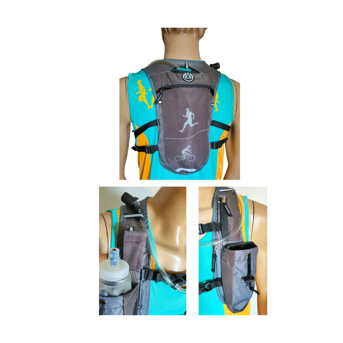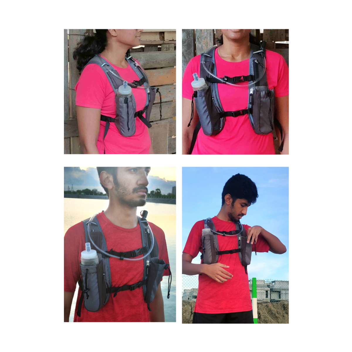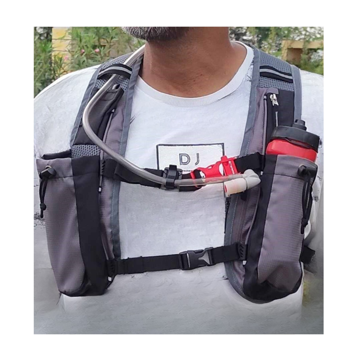 AMPLE HYDRATION CAPACITY: Equipped with a 1-litre hydration bladder on the back and two front chest pouches capable of holding 500ml bottles each, allowing you to stay hydrated throughout your run.