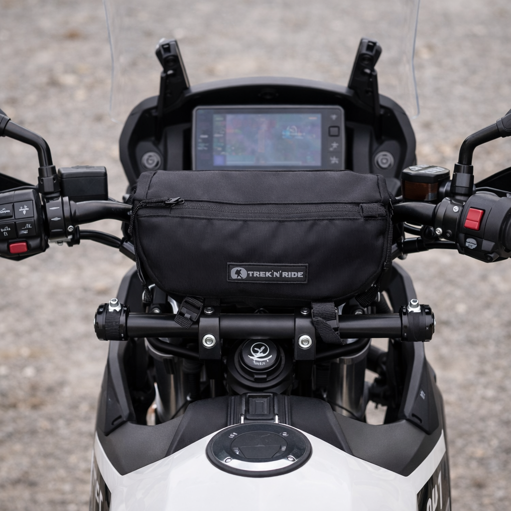 A compact Motorcycle Handlebar Bag with 2 Compartments – the perfect solution for riders who demand convenience and accessibility while on the road.