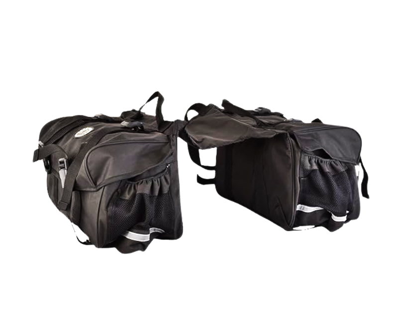 Trek N Ride Motorcycle Saddle Bag – CLASSIQ is the ultimate companion for your bike adventures. These saddle bags are designed to enhance your journey by providing versatile storage solutions while ensuring safety and convenience. This universal model saddle bag with adequate space, reflective stripes to ensure night visibility, and 4 external pouches to carry water bottles, tools, snacks, etc. makes it the ideal touring companion.